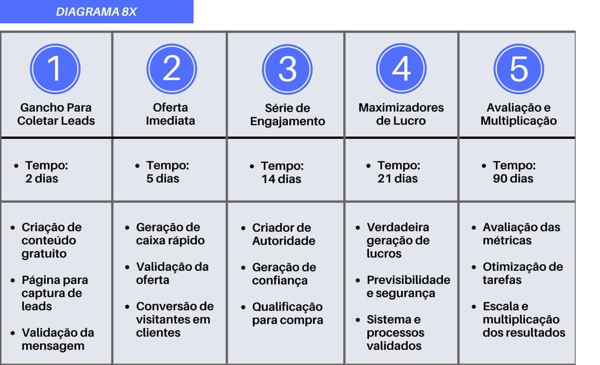 Você será seguido através de um método de 5 etapas, dessa forma você terá clareza das ações que deve tomar e não vai perder tempo precioso investido no que não funciona.